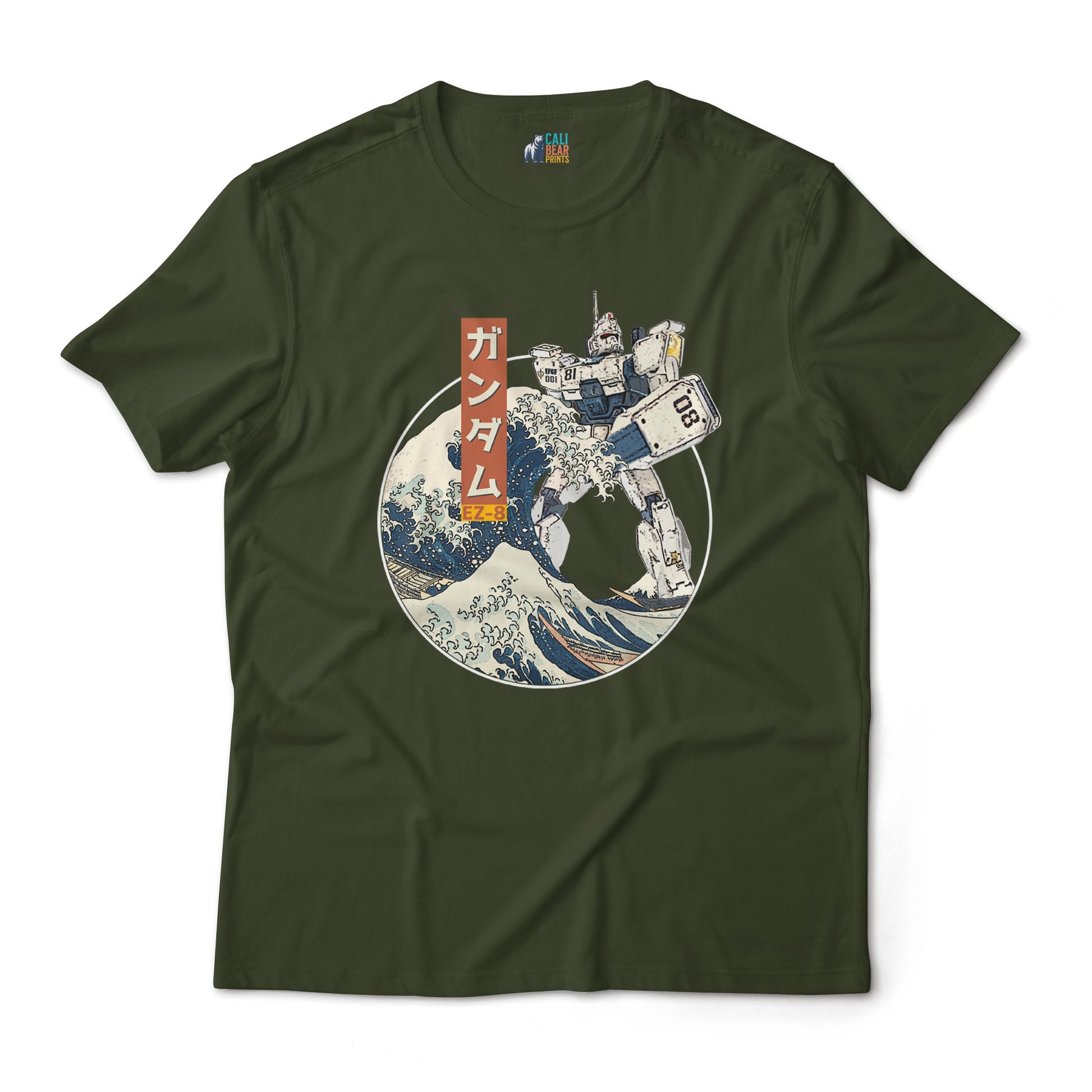 Bring two worlds together with this unique Gundam EZ-8 T-Shirt, featuring a bold mashup of mecha and classic Japanese art. The design showcases the iconic RX-79[G] EZ-8 Gundam stepping out of The Great Wave off Kanagawa in a striking circular frame, blending traditional ukiyo-e style with futuristic mecha aesthetics. The Japanese katakana text ガンダム (Gundam) and “EZ-8” add an authentic touch for anime and Gundam fans alike. Printed on a premium tee, this shirt is perfect for collectors, streetwear fans, and anyone who loves anime-inspired fashion with a cultural twist.