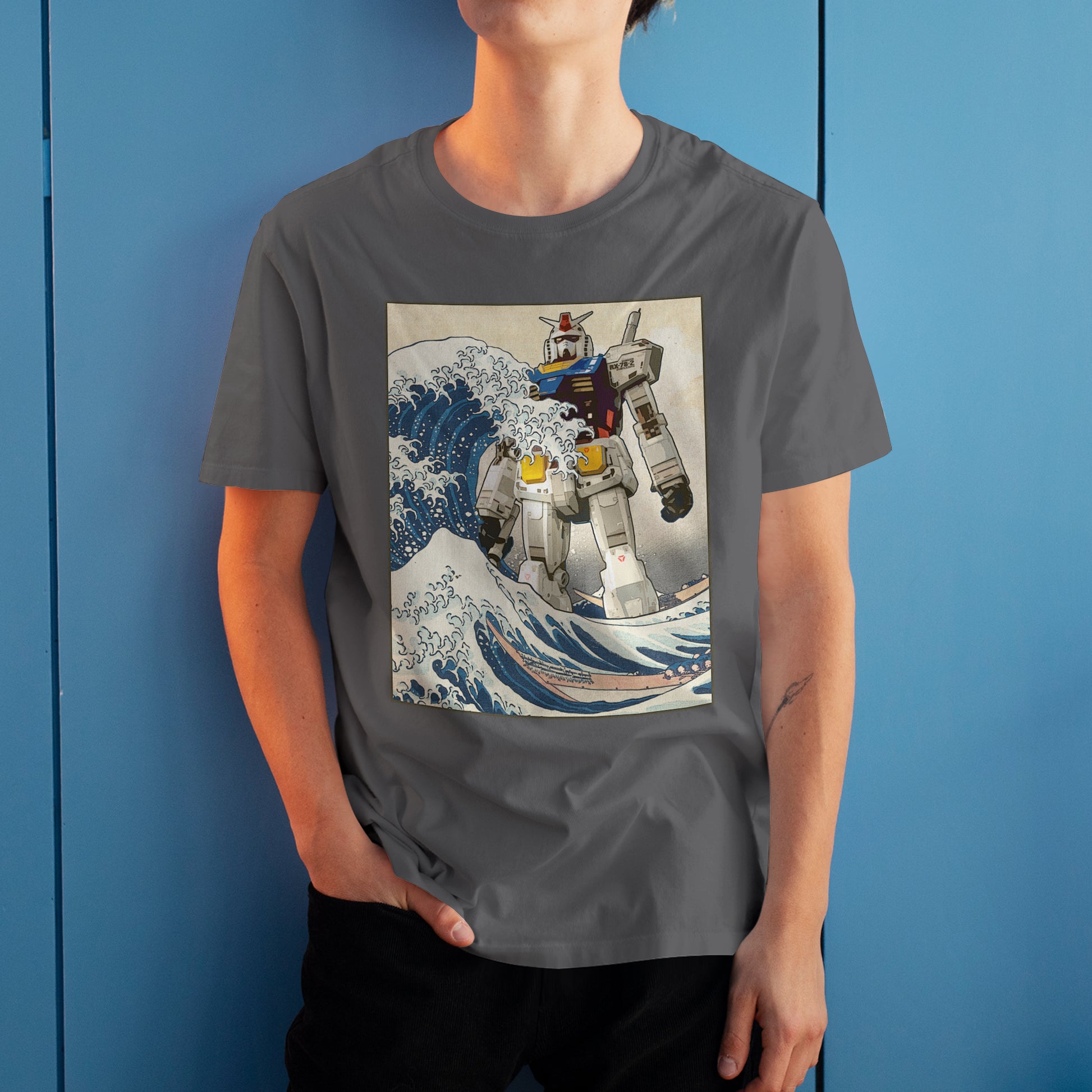 Unleash your inner pilot with this epic Gundam Mecha Wave T-Shirt, blending the iconic RX-78-2 Gundam with Hokusai’s legendary "The Great Wave off Kanagawa." This bold graphic tee combines classic Japanese ukiyo-e art with retro anime power for a truly unique style statement.